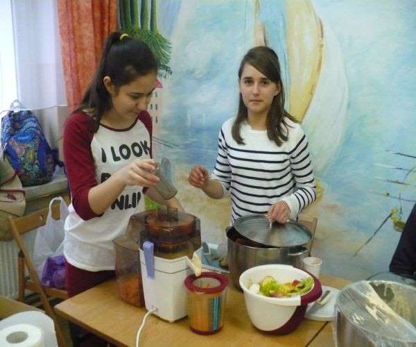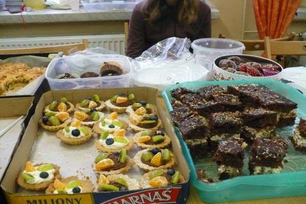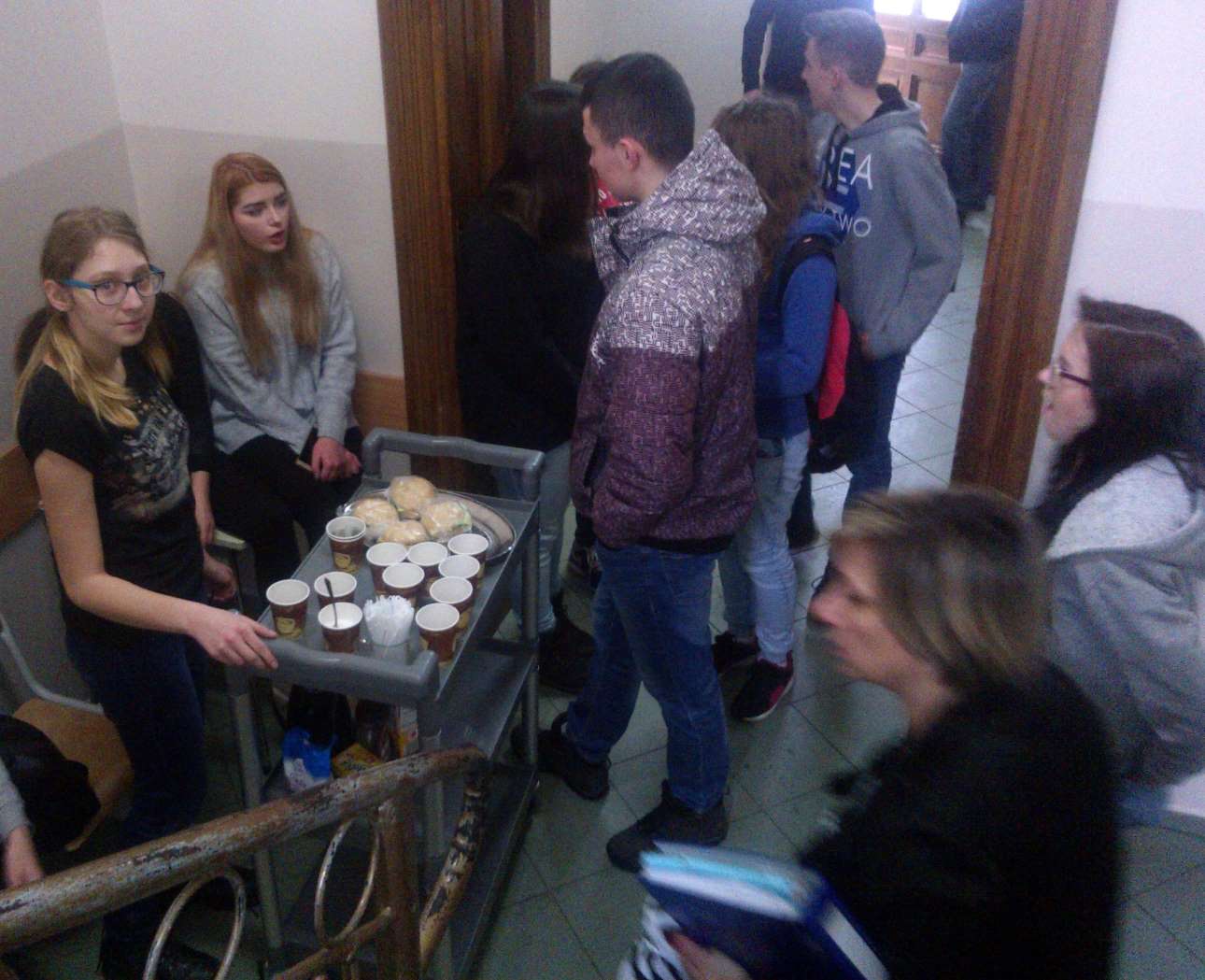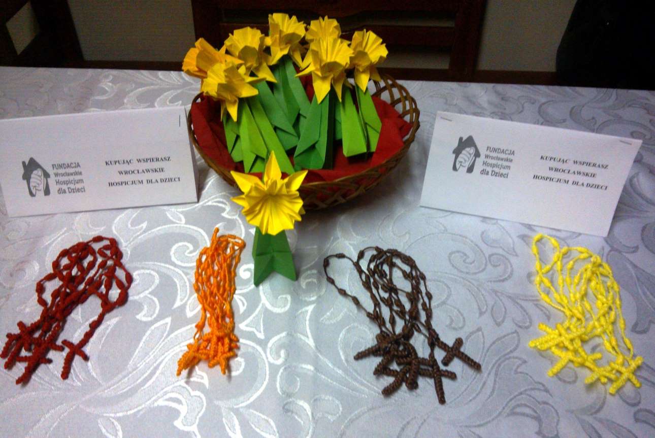 W dniach 24-27.01.17 klasa 2T zorganizowała kiermasz charytatywny na terenie szkoły przy ulicy Parkowej. Na każdej przerwie uczniowie sprzedawali samodzielnie przygotowane pyszne kanapki, babeczki, można było także zamówić gorącą czekoladę. Pojawił się także stolik z rękodziełem przygotowanym przez panią Joannę Iskrę. Wiosenne, papierowe żonkile wykonane w technice orgiami (symbol opieki paliatywnej) oraz kolorowe różańce wykonane w technice makramy. Można było kupić więc coś dla ciała i coś dla ducha, a cel był bardzo szczytny. Uczniowie zebrane fundusze przeznaczyli na cele charytatywne – wsparcie dla Wrocławskiego Hospicjum dla Dzieci. Zebrane pieniądze przeznaczono na zakup pieluszek jednorazowych, które razem z rękodziełem zostaną zawiezione podczas ferii do siedziby Fundacji.
