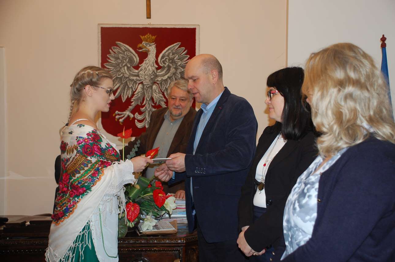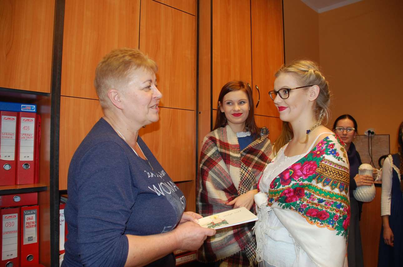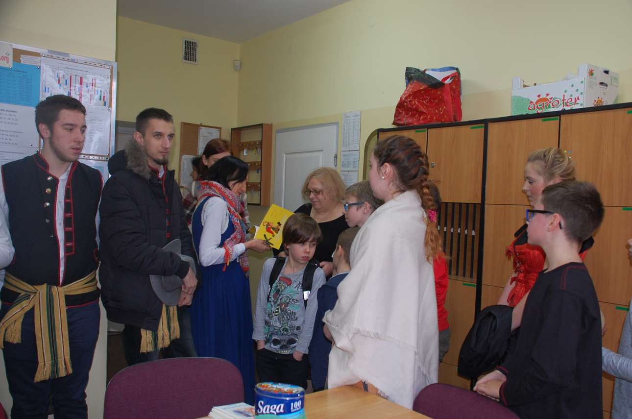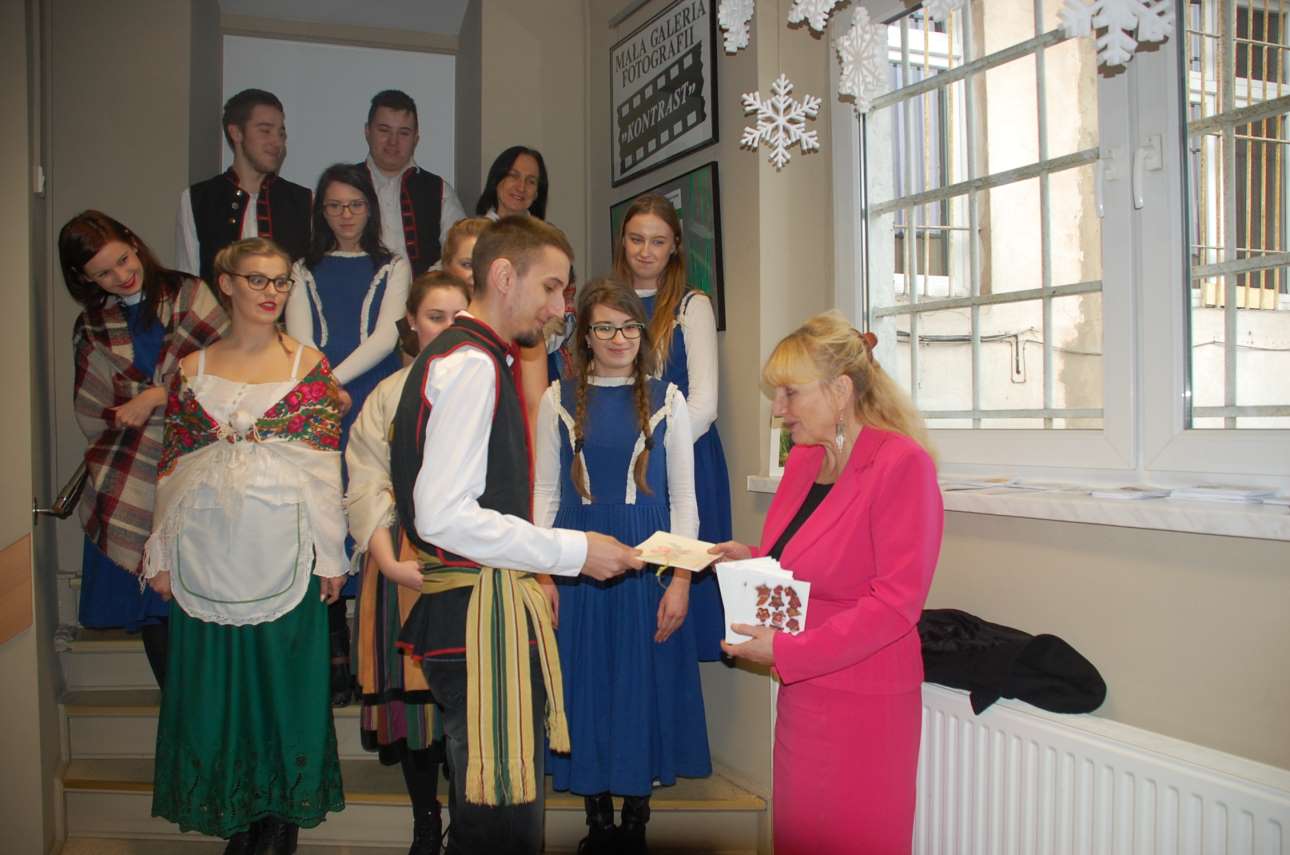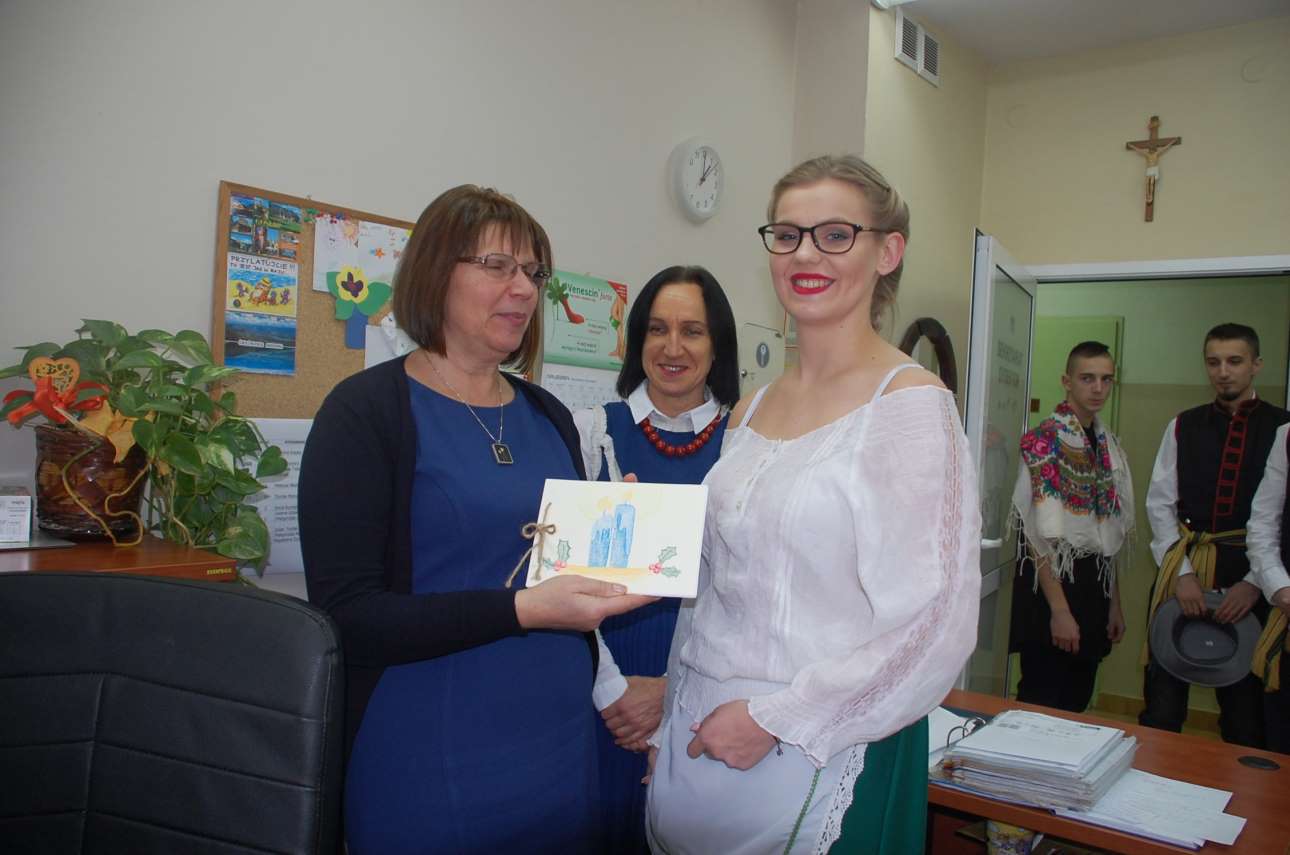 We wtorek - 20 grudnia ubrani w stroje ludowe wyruszyliśmy ze szkoły, by odwiedzić lokalne instytucje i złożyć ich pracownikom świąteczne oraz noworoczne życzenia. Wszędzie byliśmy miło przyjęci. Wspólnie śpiewaliśmy kolędy a później na ręce przedstawicieli placówek składaliśmy życzenia wraz z tomikami naszej bożonarodzeniowej poezji.