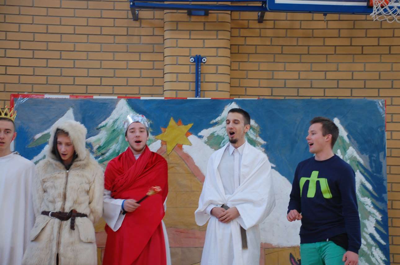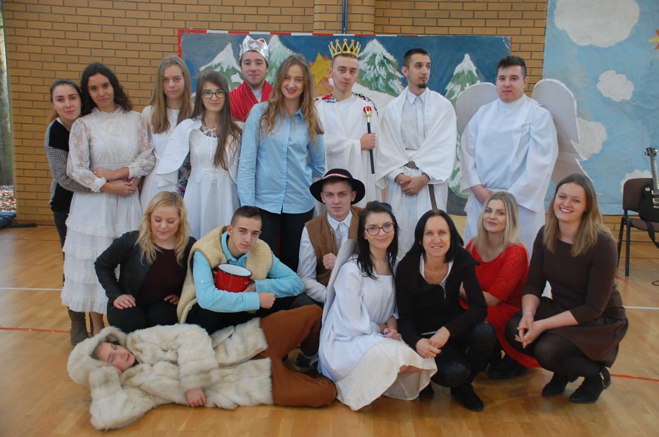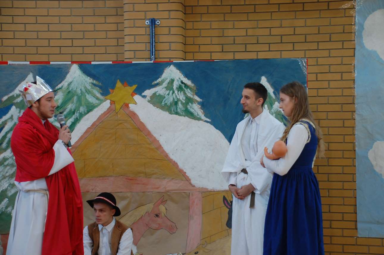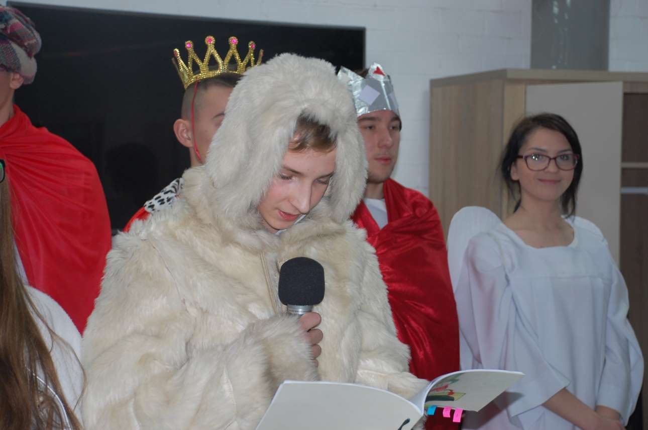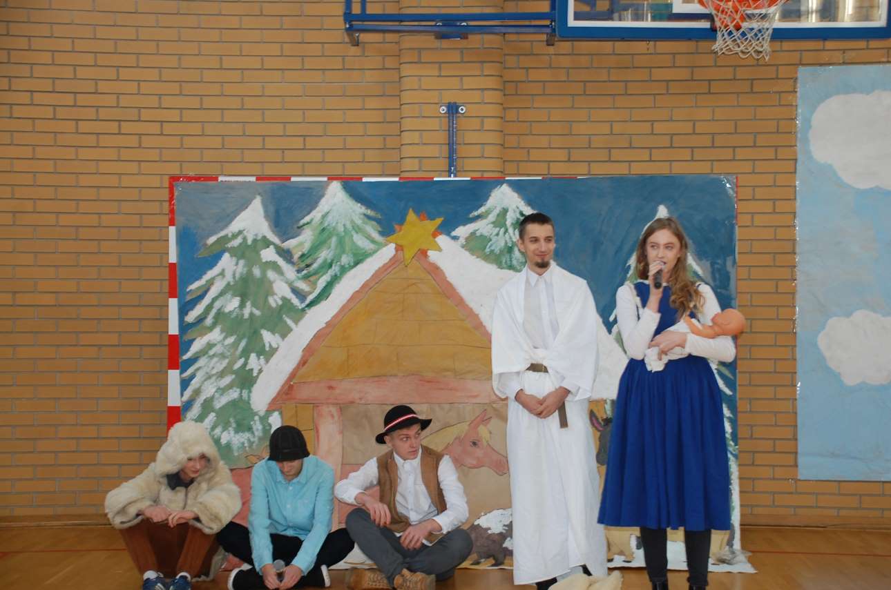 22 grudnia odbyło się przedstawienie teatralne w wykonaniu klasy 2 gimnazjum, poruszające temat Świąt Bożego Narodzenia w różnych państwach w aspekcie problemów uchodźców z Syrii. W spektaklu uchodźcy odwiedzali domy mieszkańców z różnych europejskich krajów, gdzie zostali (jednakże nie wszędzie), serdecznie goszczeni. Podczas spotkań wspólnie śpiewali kolędy w języku narodowym oraz byli częstowani specjałami lokalnej kuchni. Przedstawienia przeplatane było filmami, które pokazywały sytuację uchodźców na świecie i w Polsce i jak są traktowani. Tematyka i sposób przedstawienia różniły się od jasełek we wcześniejszych latach, mimo to uczniom bardzo się podobało i nie obyło się bez gromkich braw.