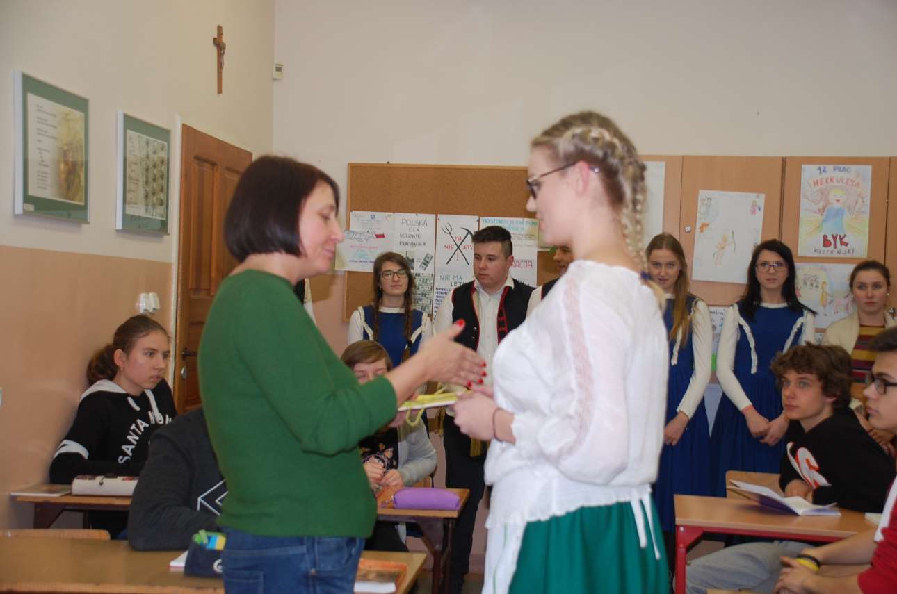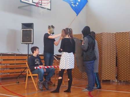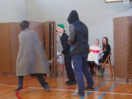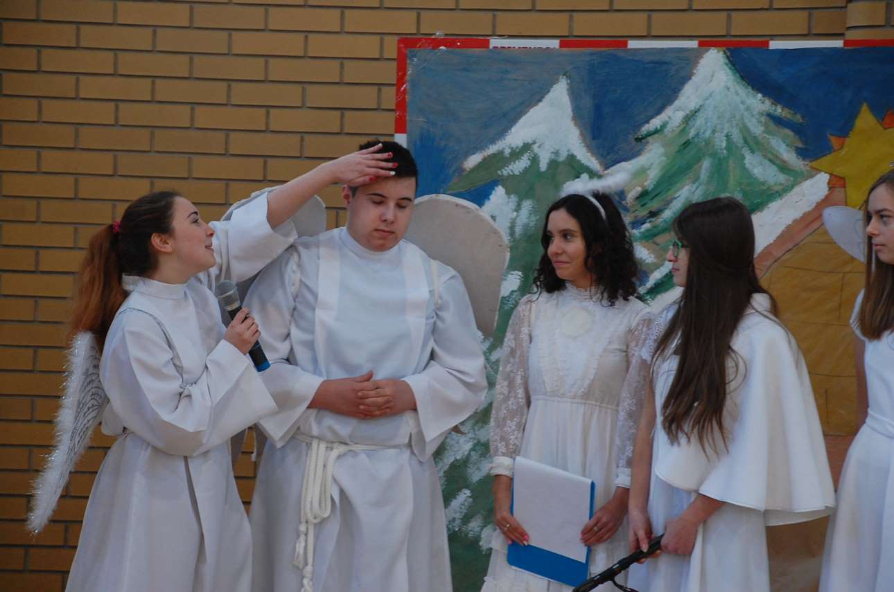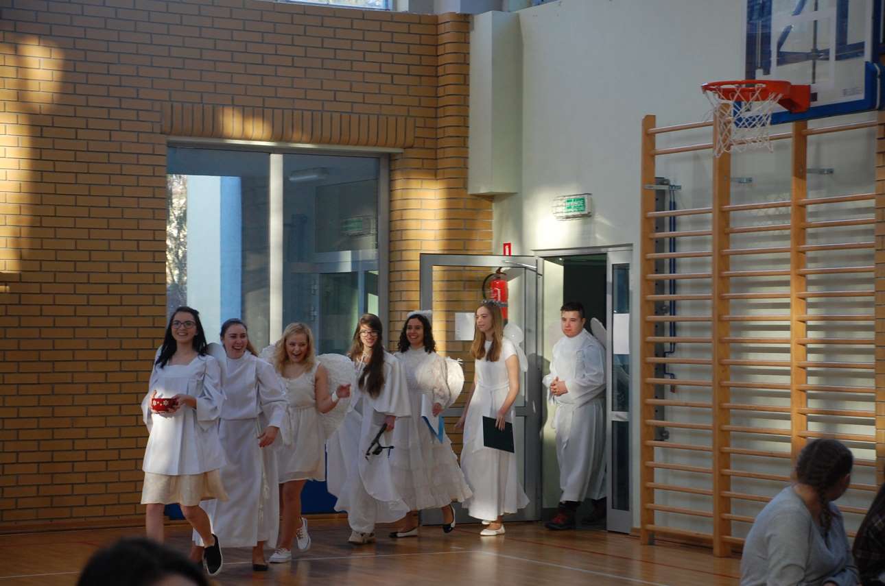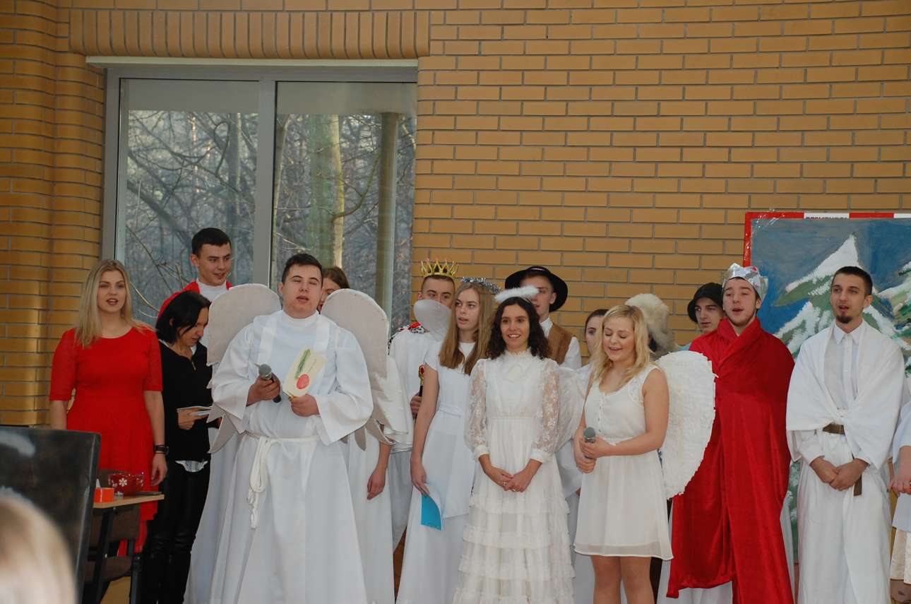 22 grudnia odbyło się przedstawienie teatralne w wykonaniu klasy 2 gimnazjum, poruszające temat Świąt Bożego Narodzenia w różnych państwach w aspekcie problemów uchodźców z Syrii. W spektaklu uchodźcy odwiedzali domy mieszkańców z różnych europejskich krajów, gdzie zostali (jednakże nie wszędzie), serdecznie goszczeni. Podczas spotkań wspólnie śpiewali kolędy w języku narodowym oraz byli częstowani specjałami lokalnej kuchni. Przedstawienia przeplatane było filmami, które pokazywały sytuację uchodźców na świecie i w Polsce i jak są traktowani. Tematyka i sposób przedstawienia różniły się od jasełek we wcześniejszych latach, mimo to uczniom bardzo się podobało i nie obyło się bez gromkich braw.