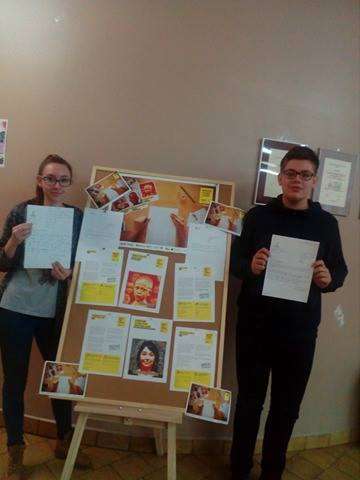 W grudniu w ramach Maratonu Pisania Listów, akcji organizowanej przez Stowarzyszenie Amnesty International, wspólnie udało nam się napisać aż 1037 listów w obronie praw osób, wobec których są one łamane. W tym roku wzywaliśmy Prezydenta Malawi do ochrony osób z albinizmem, które zagrożone są z powodu przekonania niektórych, że będą mogli się wzbogacić zabijając i sprzedając części ciała osoby z albinizmem. Apelowaliśmy również do Premiera Kanady w sprawie zatrzymania budowy tamy i uszanowania zobowiązań Kanady do ochrony praw mieszkańców i mieszkanek doliny rzeki Peace w Kolumbii Brytyjskiej. Najwięcej listów, bo ponad 100, napisała Kinga Świderska (uczennica klasy 4T) , za co w nagrodę otrzymała nowo wydaną książkę odwiedzającego naszą szkołę podróżnika Aruna Milcarza pt. ”CZAD”. Dziękujemy wszystkim za zaangażowanie!