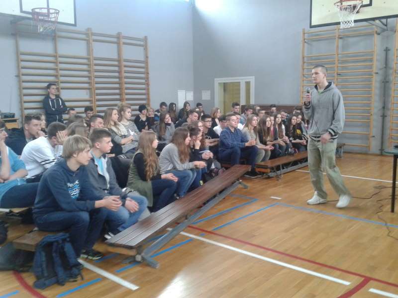Wszyscy zdajemy sobie sprawę z tego, jak szkodliwe dla naszego życia są : narkotyki, dopalacze, nikotyna, alkohol i inne nałogi. Jednak dobrych działań powstrzymujących nas przed ryzykiem uzależnienia nigdy za dużo, szczególnie jeśli organizują je ludzie, którzy znają problem naprawdę o wiele bardziej niż niejeden tzw. specjalista od profilaktyki. Takimi właśnie prawdziwymi Nauczycielami stali się dla nas pan Marcin Tyburczy i pan Dariusz Orłowski z<Fundacji Latarnia, którzy 31 marca 2016 odwiedzili nasze Gimnazjum i Liceum. Wiedzy jaką nam przekazali, popartej własnymi, bolesnymi doświadczeniami, wzbogaconej o głęboko zapadające w pamięć reportaże filmowe, nigdy nie zapomnimy. Kto był na prezentacji - ten z całą pewnością nie da się zwieść jakże złudnym pokusom poprawienia sobie samopoczucia. Kto słyszał Marcina i Darka ten nie zaryzykuje, ponieważ już wie, że wcale a wcale nie warto w życiu wszystkiego próbować. Powszechnie znany slogan …” w życiu trzeba spróbować wszystkiego …” jest nadużyciem, śmiertelnie niebezpieczną antyradą, której powinniśmy od dzisiaj wszyscy stanowczo zaprzeczyć. Od tego mamy mądre, myślące głowy, aby w życiu umieć wybierać tylko dobre dla nas rzeczy. I oby nas zawsze ręka Boska chroniła przed przepaścią jaką są środki, substancje psychoaktywne oraz przedmioty od których można się uzależnić, tak jak swego czasu ochroniła naszych Nauczycieli z „Latarni”. Dla nas wszystkich to czwartkowe spotkanie w ostatnim dniu marca było niezwykłym przeżyciem! Dziękujemy !!!