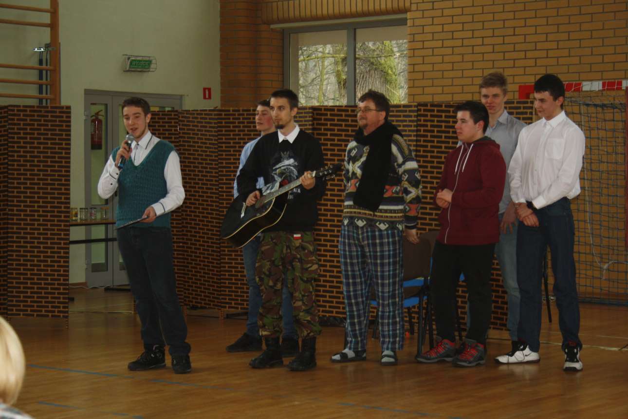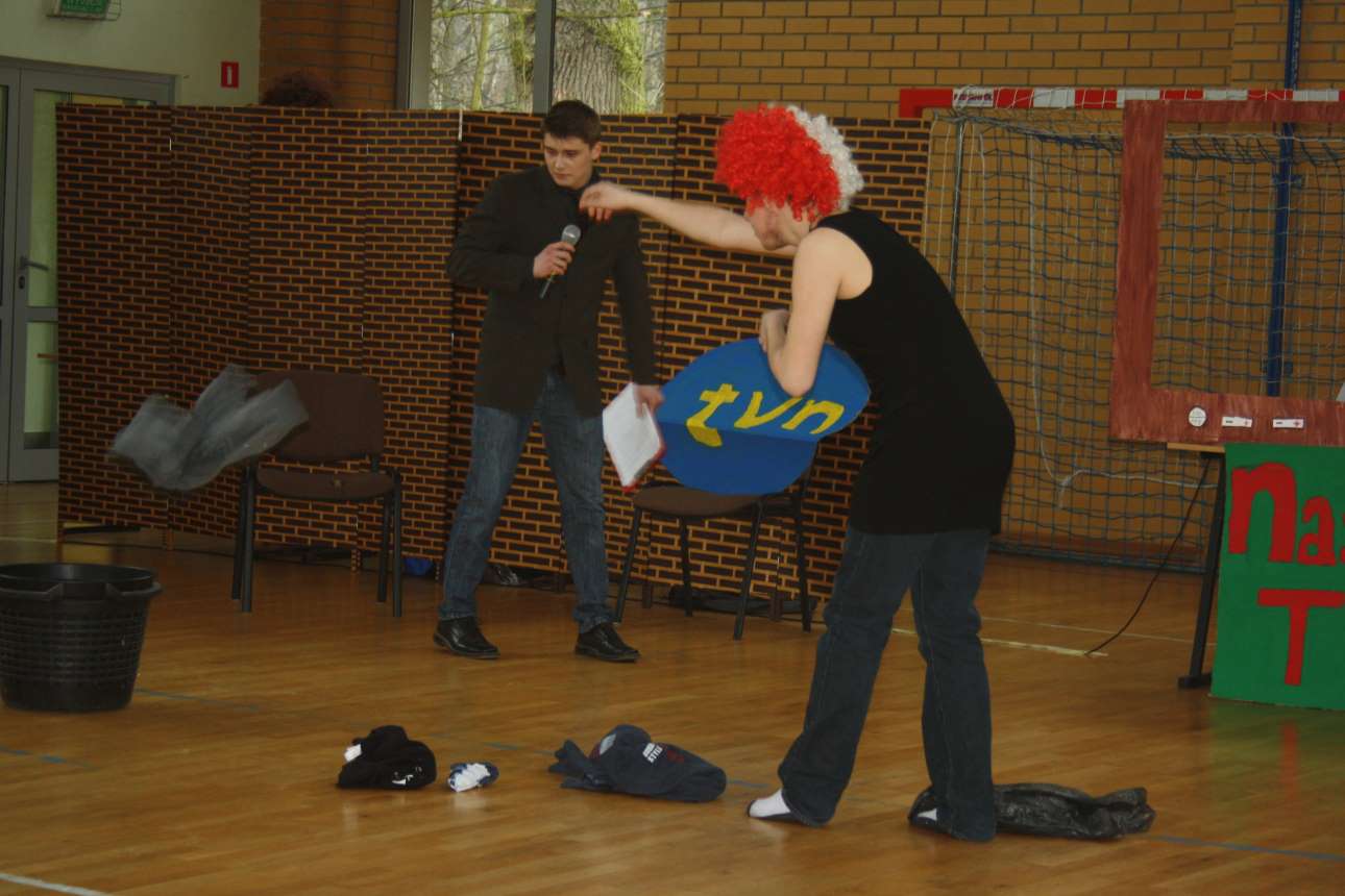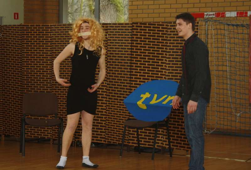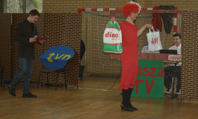 Brzydsza (?), męska część naszej szkoły zorganizowała w dniu 8 marca okolicznościową akademię z okazji Dnia Kobiet. Ta forma wyrażenia podziękowań i podziwu dla naszych koleżanek, wychowawczyń, nauczycielek i całego damskiego personelu, miała postać programu telewizyjnego o konwencji kabaretowej. Chcieliśmy wywołać uśmiech, w pogodnej formie ukazać świat kobiet, widziany okiem chłopa.