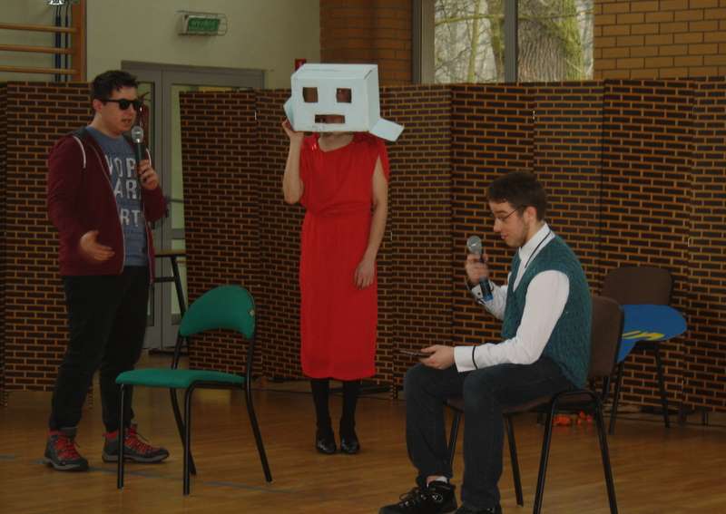 O właściwy wygląd całości zadbał szczególnie Kacper Kozioł, który też wcielił się w postać współczesnego młodzieńca przeżywającego miłosne uniesienie. Salwy śmiechu wywoływał występ Jakuba Rokity, który też razem z Kacprem zadbał o aranżację sceny. Dzielnie i dowcipnie prowadzili program ze studia naszej telewizji Bartosz Iwiński (dbający też o efekty dźwiękowe) i Mikołaj Szumiło. Świetnie zaprezentowali się na scenie: Jacek Mroczek, Piotr Turczyński, Konrad Więcek i Mateusz Borowiec. Sceniczny debiut zaliczył powstały na potrzeby spektaklu zespół "Łupież Bożenki". Tylko choroba wykluczyła z programu Krzysztofa Przystarza. Dziękujemy też wszystkim, którzy wzięli aktywny udział w przedstawieniu.