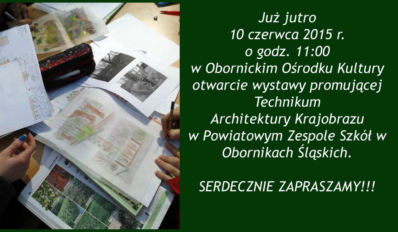Przedstawiamy krótką fotorelację z wernisażu wystawy poświęconej Technikum Architektury Krajobrazu, który miał miejsce 10 czerwca w Obornickim Ośrodku Kultury. Bardzo nam miło, że na otwarciu towarzyszyło nam w tym dniu tylu gości, dziękujemy za słowo wprowadzające Pani Dyrektor OOK p. Halinie Muszak i Panu Dyrektorowi PZS Sławomirowi Szypulskiemu, jak również p. Monice Materny, odpowiedzialnej za organizację naszej wystawy od strony plastycznej oraz paniom nauczycielkom i uczniom z liceum i gimnazjum za przybycie. Zapraszamy wszystkich do obejrzenia naszych prac - rysunków, projektów, zdjęć i makiet, które jeszcze przez dwa tygodnie będą wystawione na ekspozycji w holu i galerii plastycznej OOK.