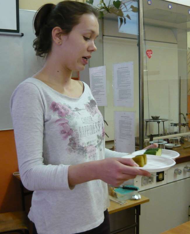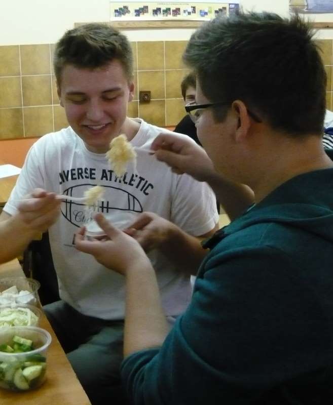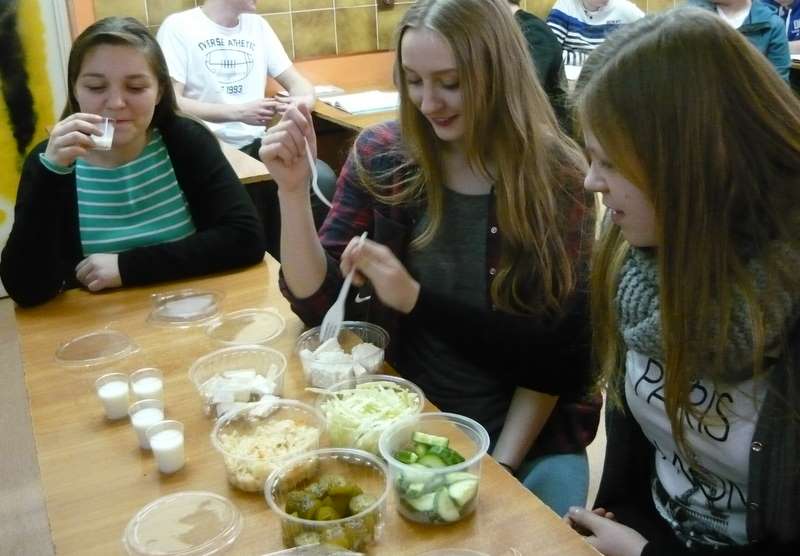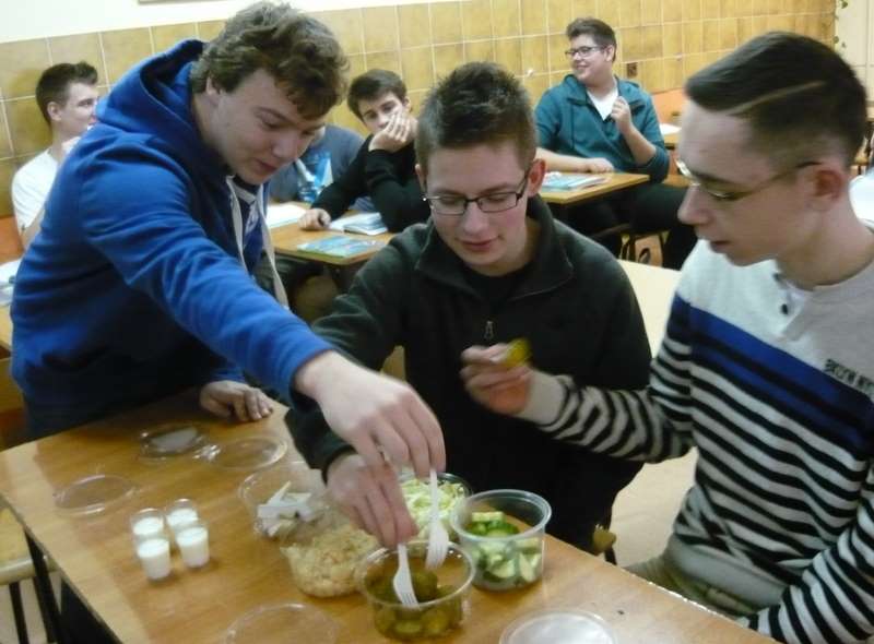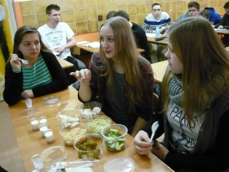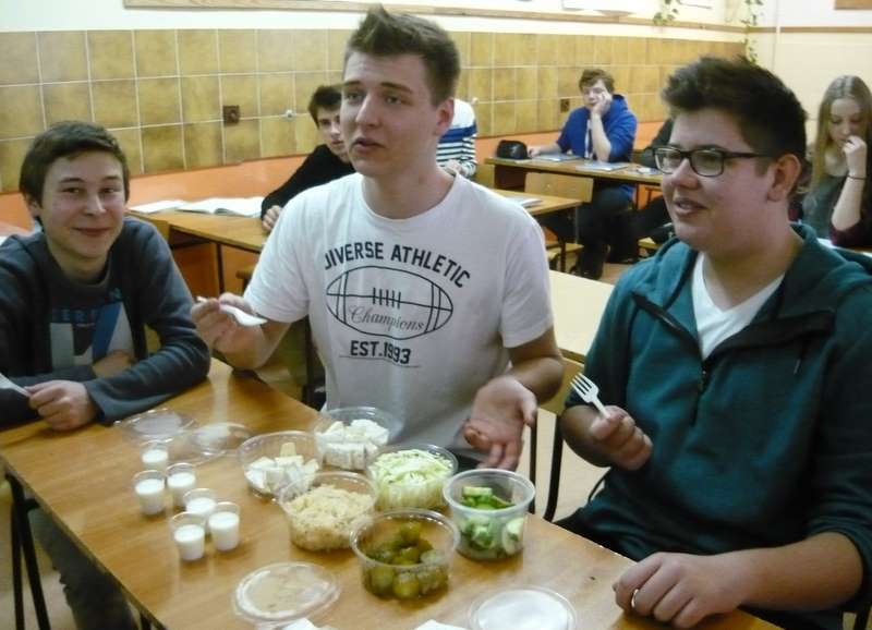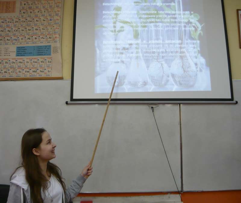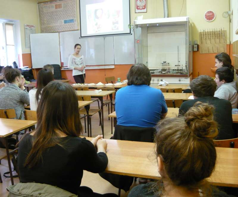 Uczniowie klas pierwszych Liceum wykazali się ogromną kreatywnością i przygotowali niecodzienną lekcję biologii. Punktem wyjścia była biotechnologia, stosowana od lat w życiu człowieka, ale tak "naukowo" nie nazywana. Lekcję prowadziły: Ela Ninierza i Klaudia Oświęcimska z klasy 1A oraz Małgosia Żuchora i Kornelia Rokitowska z klasy 1B. Dziewczyny połączyły prezentację multimedialną o produktach wytwarzanych dzięki biotechnologii w przemyśle spożywczym z degustacją tych potraw. W każdej klasie lekcja przebiegała nieco inaczej, ale w każdej klasie było super! Smacznie, zdrowo i wesoło, nikt się nie nudził, a przede wszystkim po tych lekcjach biotechnologia przestała być trudna. Poniżej fotorelacja z zajęć.