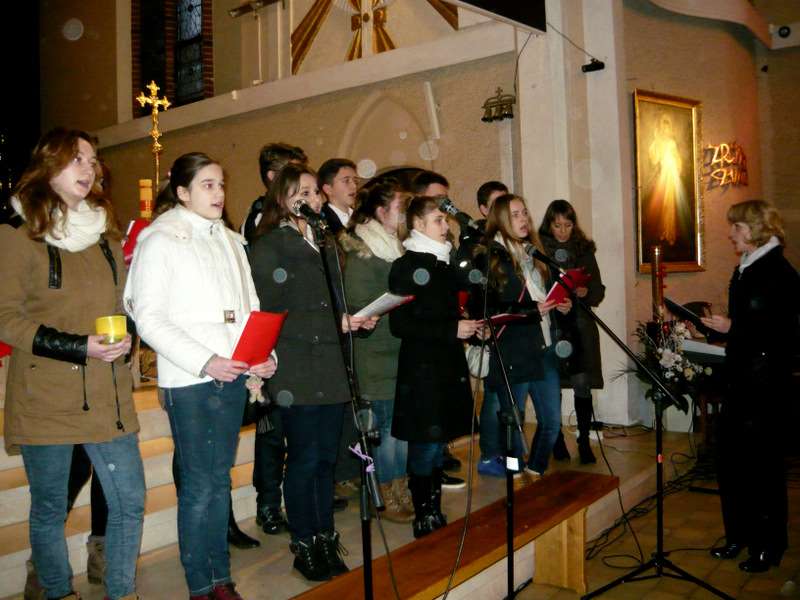 W niedzielę 18 stycznia 2015r. o godz. 15.30 w kościele NSPJ przy ul. Wyszyńskiego w Obornikach Śląskich odbył się VI Międzypokoleniowy Koncert Kolęd i Pastorałek "Pokłon oddawajmy". W Koncercie wystąpili m.in. uczniowie naszego Gimnazjum i Liceum pod opieką p. Danuty Pawlaczek i p. Magdaleny Bugielskiej-Bielenicy. Kościół jak co roku wypełniony był po brzegi. Trzeba było dostawić dodatkowe krzesła, bo w ławkach brakowało miejsca. Kolędowali mali i duzi, śpiewały dzieci, młodzież i dorośli. Koncert zakończył się wspólnym kolędowaniem, przy akompaniamencie p. Ewy Skubisz artyści wraz z publicznością zaśpiewali kolędę "Bóg się rodzi".