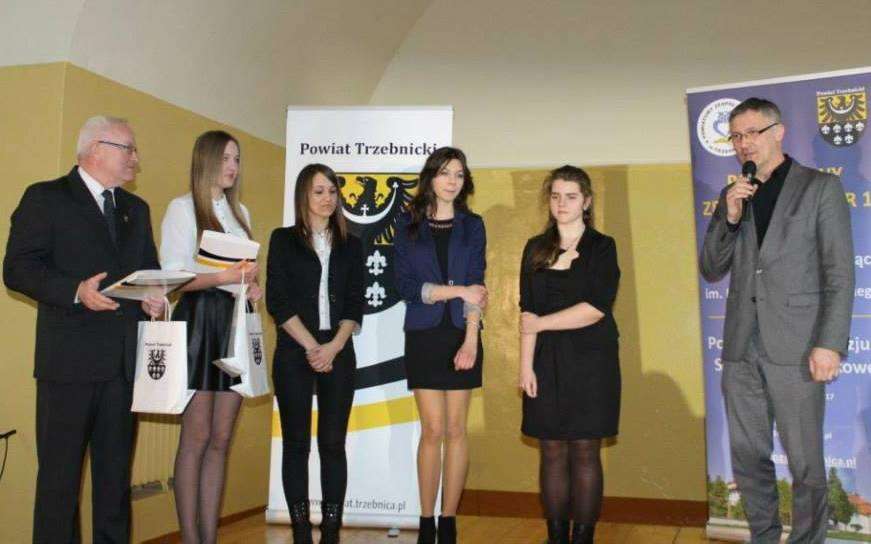 9 lutego br. w Powiatowym Zespole Szkół nr 1 w Trzebnicy po raz kolejny odbyło się wręczenie Stypendiów Starosty dla najzdolniejszej młodzieży. W gronie wyróżnionych znalazła się trójka naszych uczniów: Małgorzata Partyka (Technikum), Anna Słowińska (Liceum) oraz Anna Nehrebecka (Gimnazjum Dwujęzyczne).
