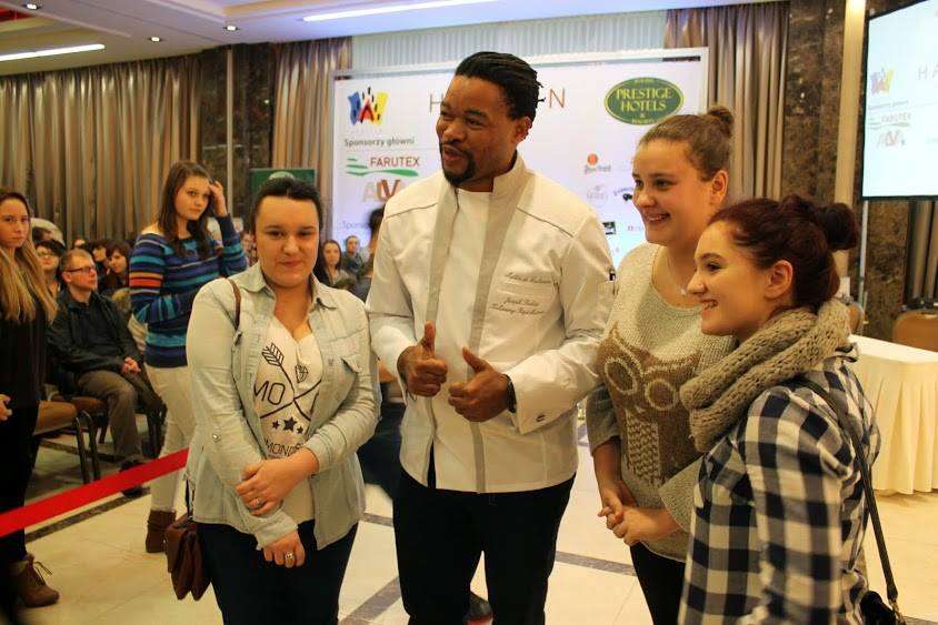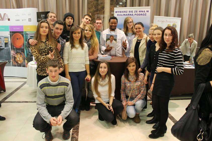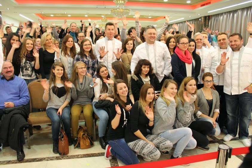 21.11.14, jak co roku, uczniowie Technikum Hotelarskiego pojechali na Kulinarny Rajd Mistrzów organizowany już po raz trzeci w sali bankietowej Hotelu Haston**** we Wrocławiu. Jest to konkurs dla profesjonalnych kucharzy z hoteli z całej Polski, którzy walczą o nagrodę główną 7000 zł oraz wejście do kolejnego etapu jakim jest prestiżowy konkurs "Kulinarny Puchar Polski". Nasi uczniowie zasiedli na widowni i obserwowali zmagania kucharskich drużyn oraz mieli możliwość degustowania dań konkursowych. Prowadzącym imprezę był pan Karol Okrasa. W jury zasiadali także: Robert Sowa, Jerzy Pasikowski, Joseph Seelesto, Marcin Budynek, Tomasz Jakubiak i Paweł Mieszała. Największą atrakcją była możliwość osobistego spotkania z jurorami znanymi z telewizyjnych programów kulinarnych. Można było zdobyć autografy, zrobić pamiątkowe zdjęcia. Jak co roku na pamiątkę przywieźliśmy plakat z autografami wszystkich jurorów, który zawiesimy w klasie hotelarskiej. Oprócz osobistych wrażeń wycieczka miała także na celu umożliwienie uczniom zaobserwowania pracy pracowników hotelu, którzy profesjonalnie przygotowali całą imprezę.
