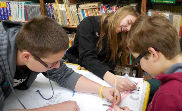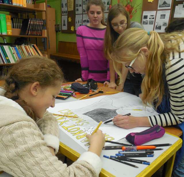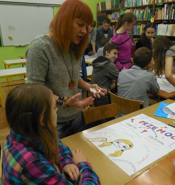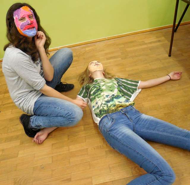 Na zajęciach artystycznych klasa druga gimnazjalna pod czujnym okiem pani J. Woś szlifuje swoją kreatywność. Uczniowie pracują w grupach, tworzą gipsowe maski, które potem pięknie ozdabiają, odgrywają scenki rodzajowe przez siebie wymyślone, rysują, malują... Słowem - rozwijają swoje talenty! A przy tym świetnie się bawią. Poniżej fotorelacja z takich zajęć.