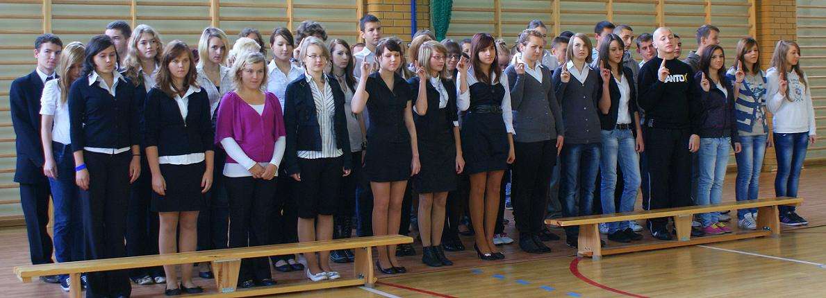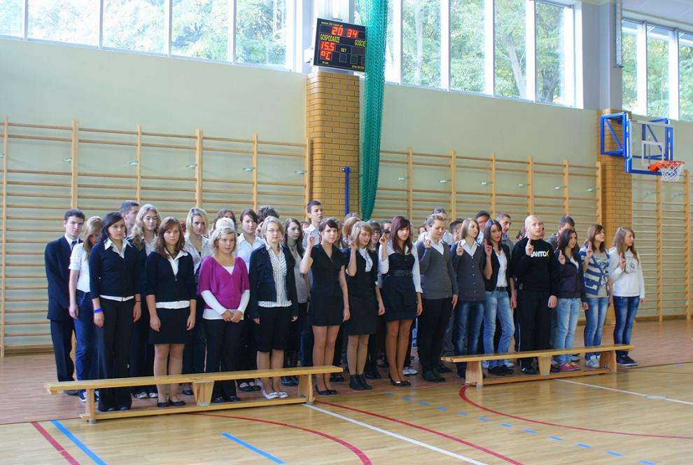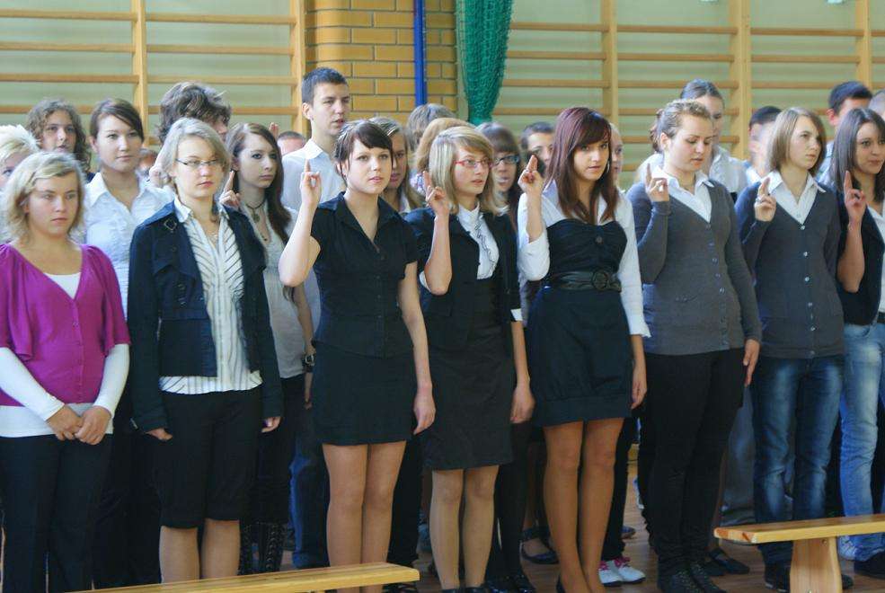 We wrześniu br. uczniowie klasy I TA/TH oraz I ZSZ wzięli udział w ślubowaniu klas pierwszych. Uroczystość została przygotowana przez p. Henryka Cymermana a poprowadziła ją przewodnicząca szkoły - Magdalena Ługowska.