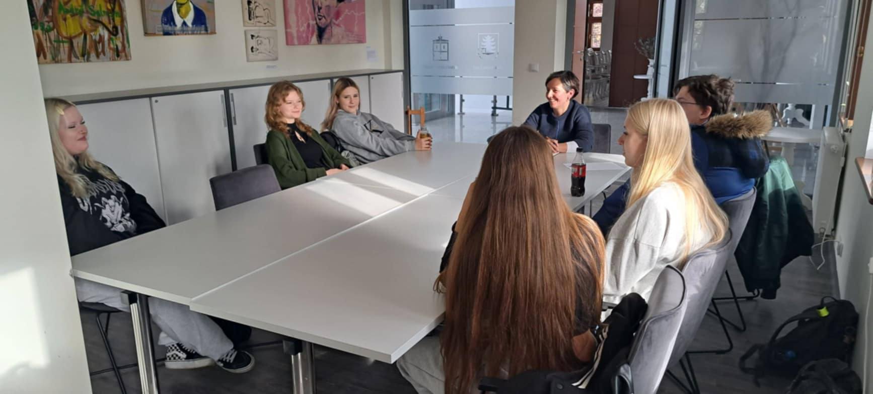 Dnia 28 października uczniowie klasy 4 i 5 technikum pod opieką nauczyciela Sebastiana Magnowskiego uczestniczyli w spotkaniu z panią Elżbietą Huculak w celu nawiązania współpracy pomiędzy Technikum Reklamy a obornickim kinem Astra.