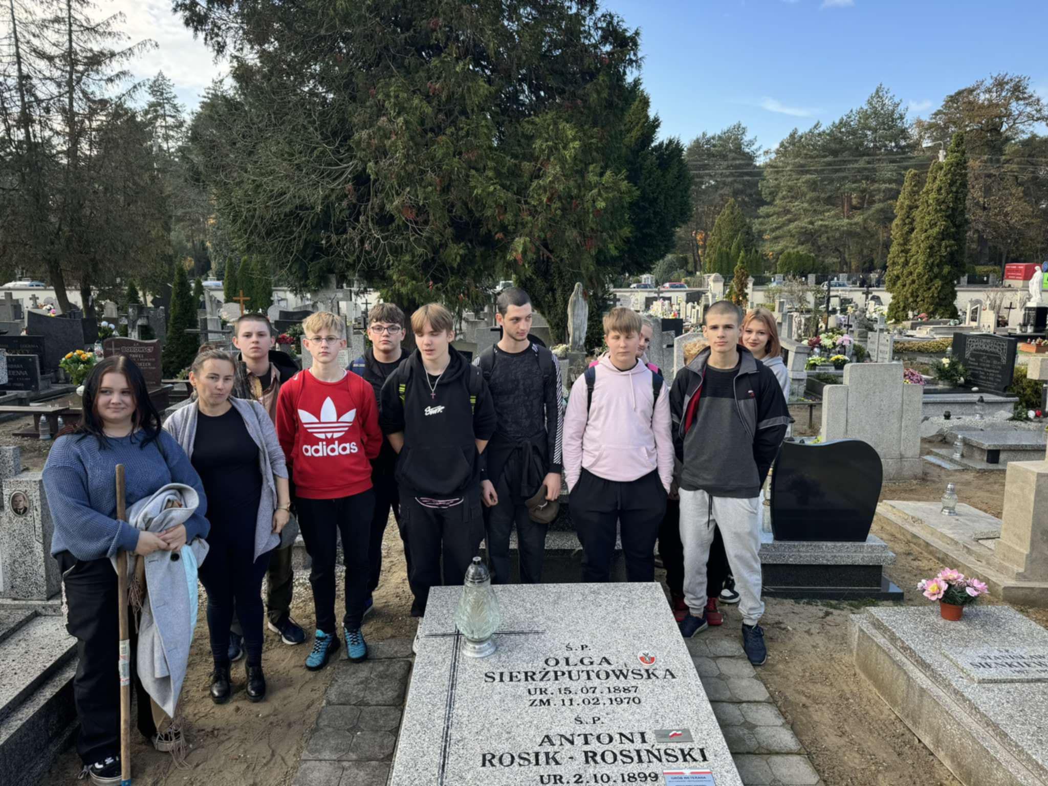 Chcąc upamiętnić zasłużonych Polaków spoczywających w obornickich mogiłach klasa 1BS wybrała się na miejscowe nekropolie. Uczniowie posprzątali zapomniane nagrobki, zapalili znicze w miejscach, o których dawno już zapomniano. Wyjście zakończono wspólną modlitwą przy grobie uczestnika wojny obronnej 1939 - Antoniego Rosika- Rosińskiego.