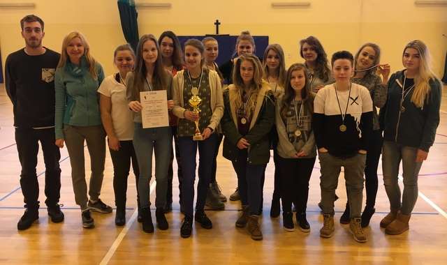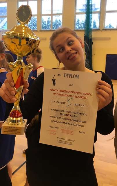 Po niezwykle zaciętych pojedynkach w ramach Mistrzostw Powiatu Piłki Koszykowej dziewcząt i chłopców, które to odbyły się w Trzebnicy w dniu 17 i 18 stycznia z wielką satysfakcją informujemy, że zarówno nasze dziewczęta jak i chłopcy wywalczyli dla naszej szkoły tytuł Mistrzowski. Rywalizacja sportowa była niezwykle zacięta, a ich finał nieprzewidywalny. To co uczyniły nasze dziewczęta wydawało się nie do wykonania. Przegrywając w pierwszej kwarcie meczu z PZS nr 2 Trzebnica 4 punktami na 46 sekundy do końca meczu ostatecznie udało im się wygrać spotkanie 1 punktem. W drugim starciu z PZS nr 1 Trzebnica również o wygranej zadecydował 1 punkt zdobyty z rzutów osobistych w ostatnich sekundach meczu. Dziękuję dziewczynom za ich wolę walki, poświęcenie i niezwykłe emocje, których mi i sobie dostarczyły. Jestem przekonana, że zawody te na zawsze utkwią nam w pamięci :)
