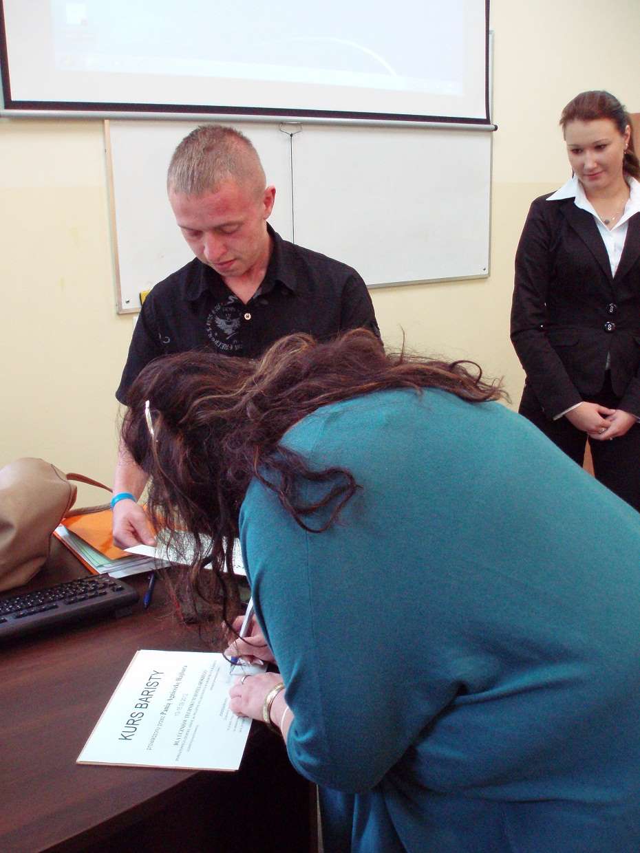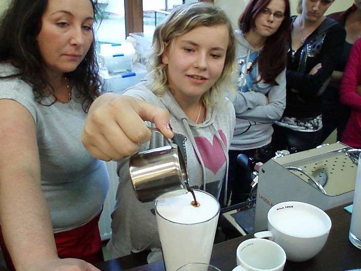 W dniach 13-15.09.2012 grupa uczniów Technikum Hotelarskiego z naszej szkoły wzięła udział w Kursie Baristy, prowadzonym przez Panią Agnieszkę Hajbura-Michałowską. Na samym początku dowiedzieliśmy się na czym polega praca baristy. Pani Agnieszka opowiedziała nam historię kawy, od zasiania, zebrania ziarna do zapakowania gotowej kawy w opakowania. W drugim dniu kursu każdy miał możliwość pracy przy profesjonalnym ekspresie. Zadaniem uczestników było zaparzyć espresso i wypić je. Śmiech towarzyszył nam przez cały piątek. Kiedy wszyscy poczuli gorzki smak swojej pierwszej kawy, przy pomocy Pani Agnieszki sporządzaliśmy kawy mleczne. Każda inna - wyjątkowa. Tym słodkim akcentem zakończyliśmy drugi dzień. W sobotę od samego rana w całej szkole unosił się zapach herbaty, bowiem sobota była poświęcona nie tylko kawie. Poznaliśmy historię, gatunki, rodzaje herbat z całego świata. Każdy miał okazję spróbować różnego rodzaju. Dowiedzieliśmy się również jak powstaje prawdziwa czekolada. Na koniec kursu został przeprowadzony egzamin teoretyczno - praktyczny. Wszyscy uczestnicy otrzymali zaświadczenie o ukończeniu kursu. Dni zleciały bardzo szybko w miłej atmosferze. Dziękujemy jeszcze raz Pani Agnieszce za cierpliwość i gorące serce. To był niezapomniany czas. Więcej zdjęć, oraz wywiad z Panią Agnieszką Hajbura-Michałowską znajduje się na stronie internetowej w zakładce TECHNIK HOTELARSTWA: http://www.hotelarzepzs.tnb.pl/news.php - na którą w imieniu całej redakcji serdecznie zapraszam.