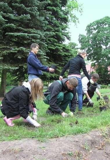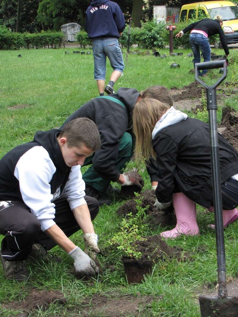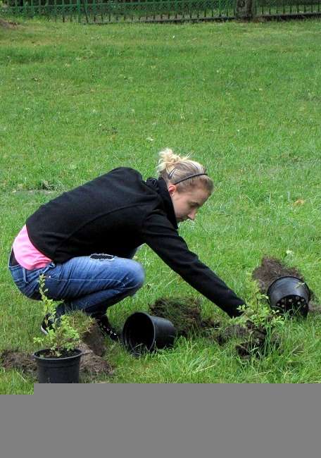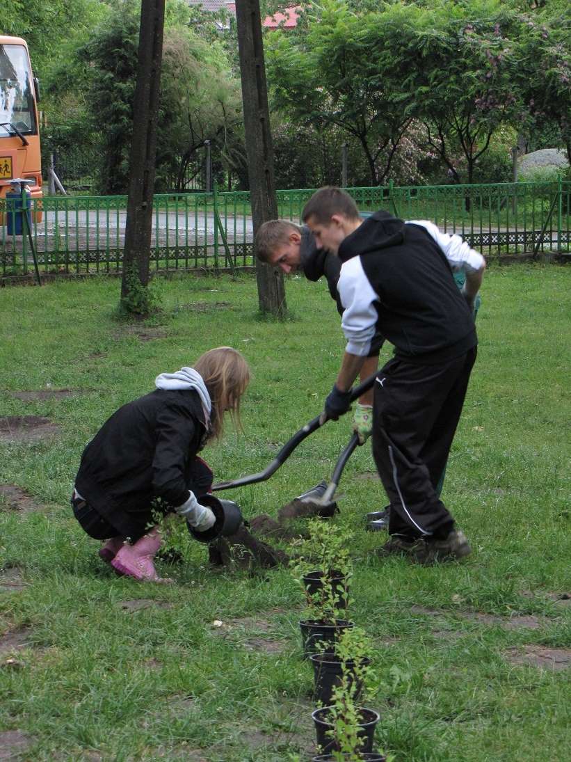 4 czerwca br. grupa uczniów z klasy 3Ta i 3TE pod opieką p. Iwony Drożdż wyjechała w ramach zajęć praktycznych do Szkoły Podstawowej w Wiszni Małej. Na miejscu, w ramach I etapu prac rewaloryzacyjnych na terenie zabytkowego parku otaczającego szkołę, wykonali nasadzenie żywopłotów i pomiarów do dalszych prac terenowych. Nowy żywopłot z tawuły von Houtte'a został posadzony za ławkami wzdłuż trawnika przed szkołą. Mamy nadzieję, że w przyszłości będzie prezentował się wspaniale!