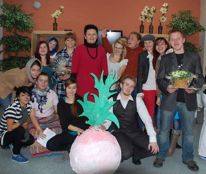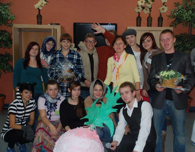 Pracownicy Domu Pomocy Społecznej w Obornikach Śląskich, z którymi współpracujemy od lat, poprosili nas o to, by w tym roku uświetnić Dzień Seniora. Czternaście osób z klas 1-3 technikum zaprezentował0 inscenizację wiersza J. Tuwima pt. „Rzepka" a później Jarek Wąsik (2TH) jako Karol Strasburger poprowadził "Familiadę".