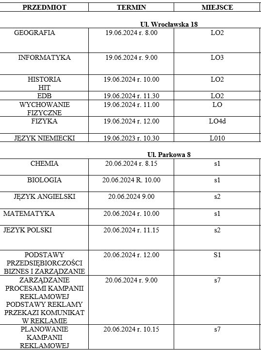 o godz. 10. 30 - Technikum i BS - ul. Parkowa 8.