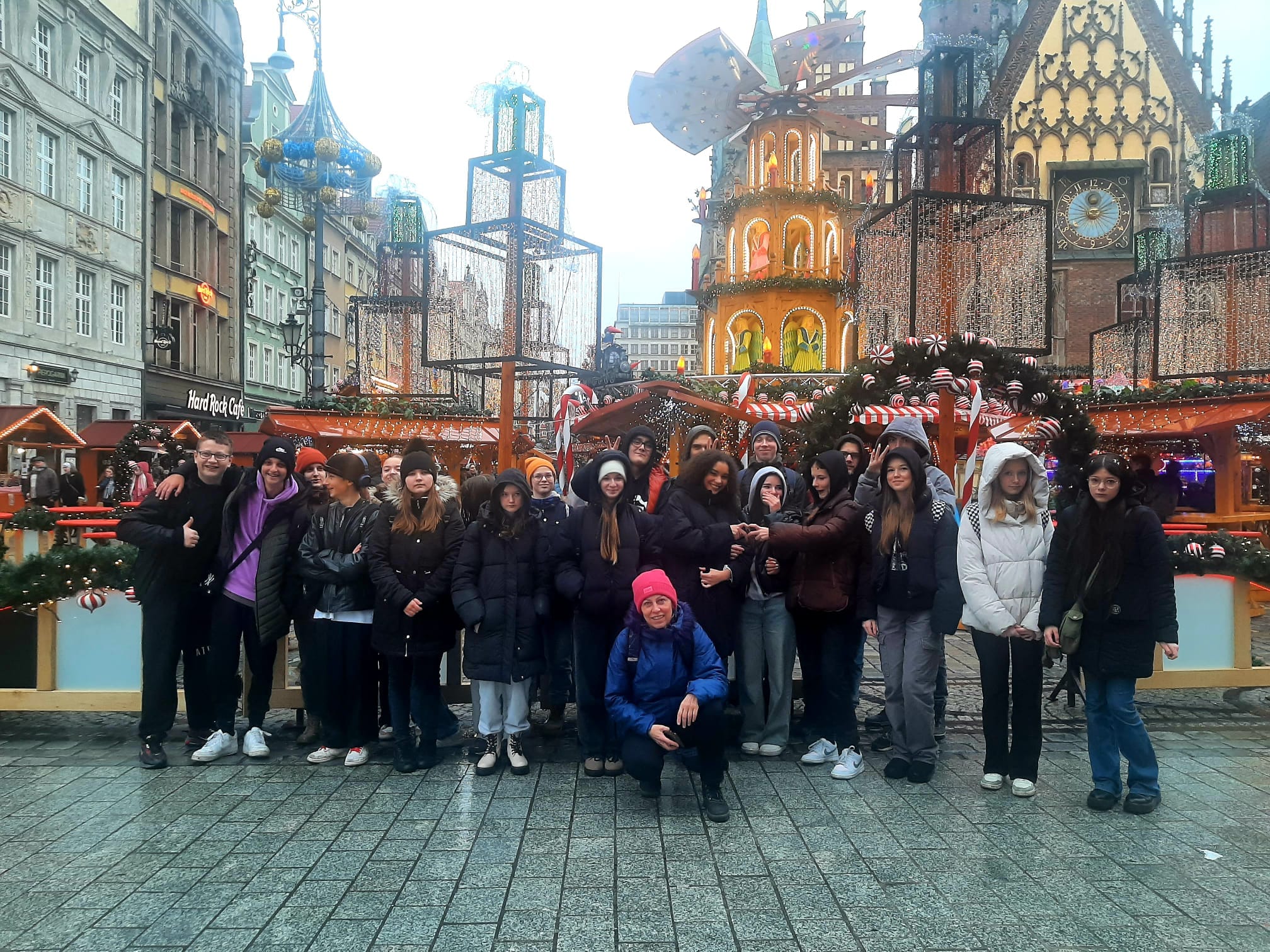 Natomiast klasy 1d i 4b spędziły piątek - 15 grudnia we Wrocławiu. Turniej na kręgielni - zwycięzcy otrzymają 6 z wychowania fizycznego, później w ramach relaksu kino i na koniec jarmark świąteczny, który mimo deszczu wprowadził nas w świąteczny klimat.