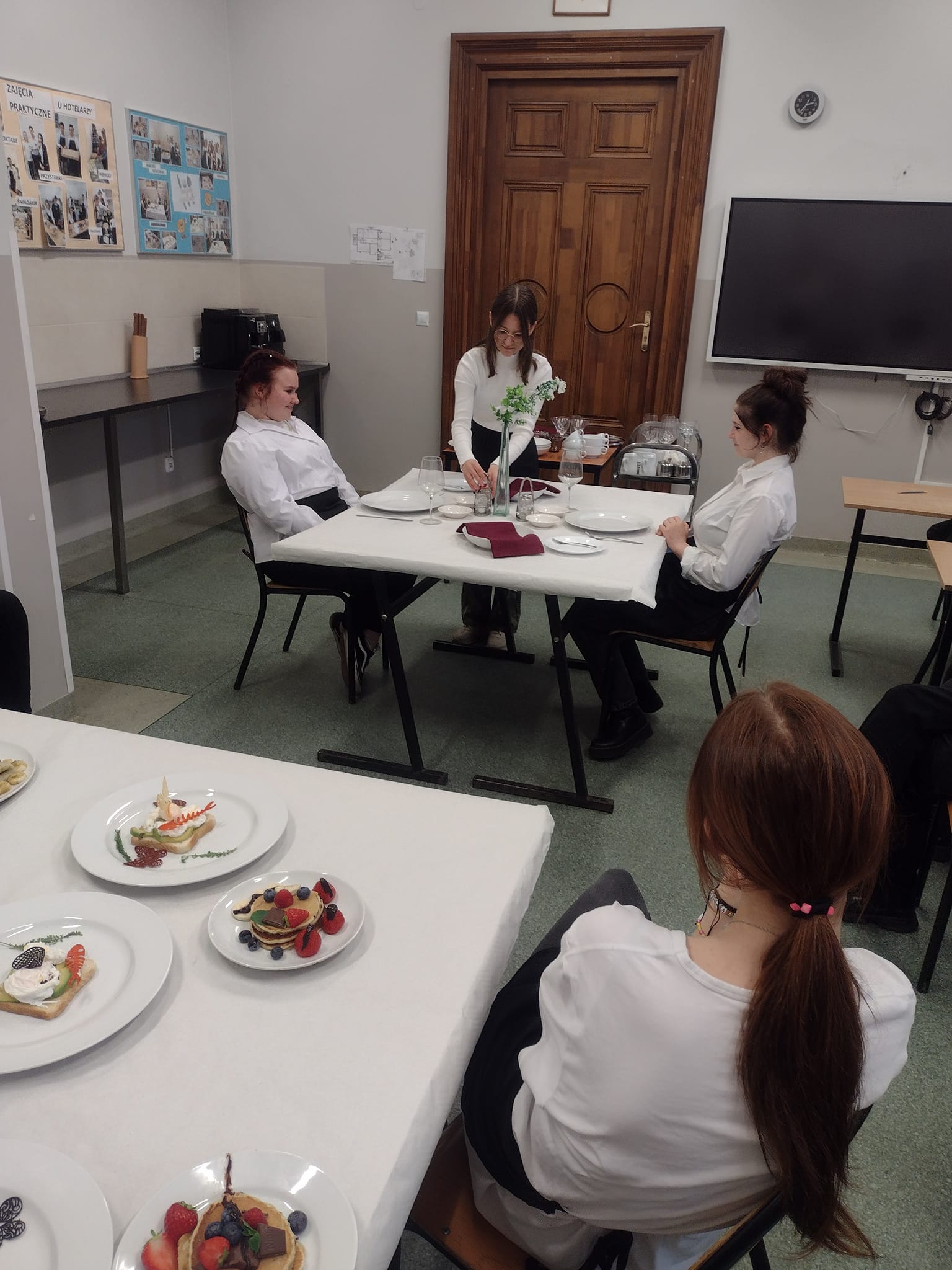 Tym razem tematem przewodnim były techniki obsługi kelnerskiej oraz zasady nakrywania stołu, połączone z zajęciami kulinarnymi.