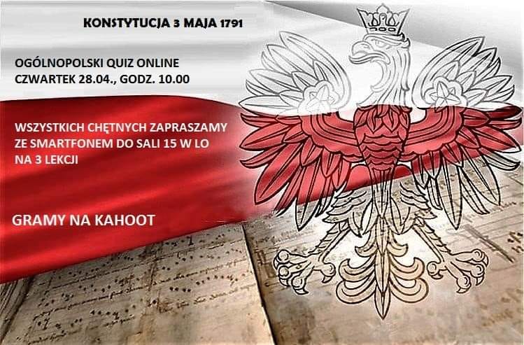 Zapraszamy do wzięcia udziału w Ogólnopolskim Quizie o Konstytucji 3 maja.