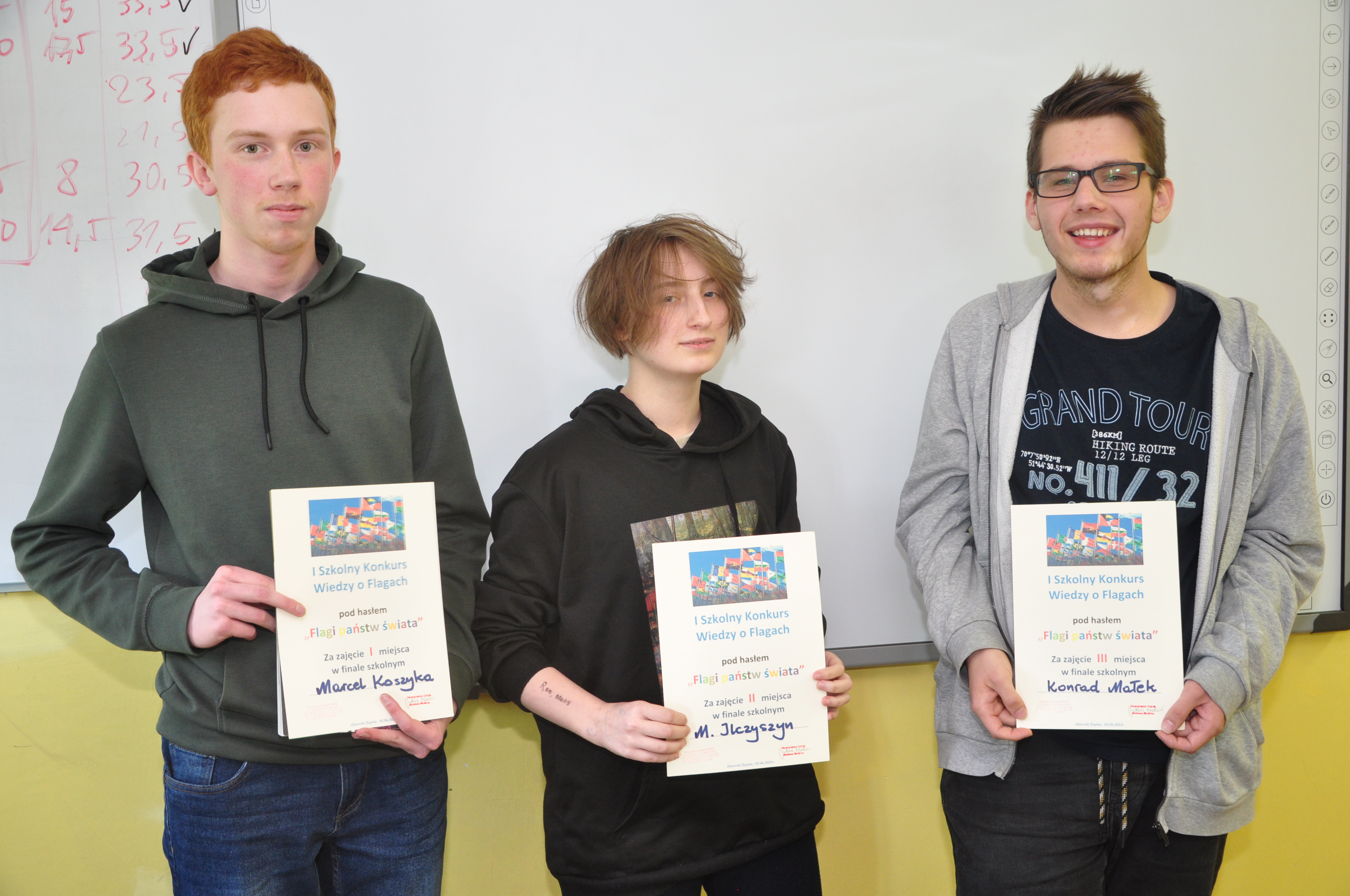 Co prawda Dzień Flagi obchodzimy 2 maja, ale równo miesiąc po naszym narodowym świecie dwanaścioro uczniów zmierzyło się w rywalizacji, uczestnicząc w szkolnym konkursie pod hasłem „Flagi świata”. A trzeba było popisać się znajomością ponad dwustu flag państwowych oraz mapy politycznej świata. Pięć quizów wyłoniło zwycięzców. Czy potrafisz odpowiedzieć na dwa wybrane z quizów pytania? Na pierwszym miejscu w konkursie zameldował się Marcel Koszyka (2b), na drugim Małgorzata Ilczyszyn (2a), podium uzupełnił Konrad Małek (3b). Gratulacje!