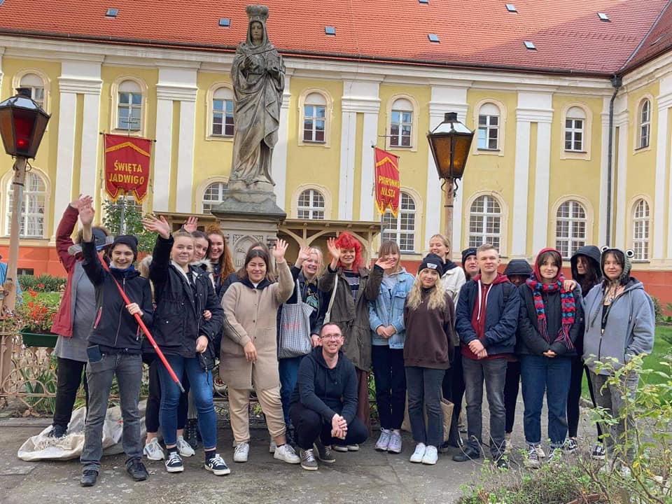 Dnia 19 października uczniowie klasy 3LOc uczestniczyli w akcji porządkowania wirydarza w Klasztorze św. Jadwigi Śląskiej w Trzebnicy. Tym samym włączyliśmy się jako społeczność szkolna obchody pięćdziesiątej rocznicy pierwszej w Polsce i Europie udanej operacji replantacji ręki. Po zakończonych pracach uczniowie mogli zwiedzić klasztor i poznać jego historię. Serdecznie dziękujemy Siostrom Boromeuszkom za gościnę i Fundacji "By służyć" za organizację akcji.