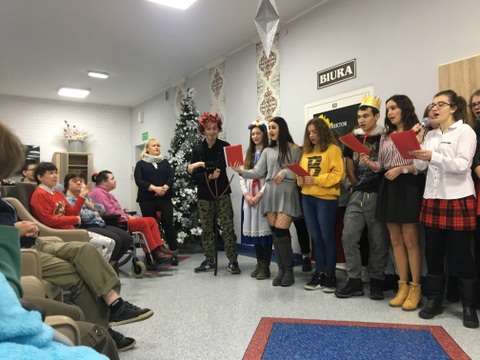 W czasie wigilii wykonali koncert kolęd oraz podzielili się opłatkiem. Najpiękniej zaśpiewali kolędy pacjentom obłożnie chorym. Była to bardzo wzruszająca wizyta, zarówno dla uczniów PZS jak i pacjentów.
