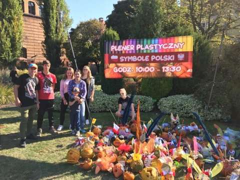 Młodzież chętnie pomagała przy organizacji pleneru plastycznego dla dzieci, którego tematem przewodnim było stworzenie Symbolu Polski z dyni. Powstałe prace wzięły udział w konkursie i wyłoniono zwycięzców, którym serdecznie gratulujemy.