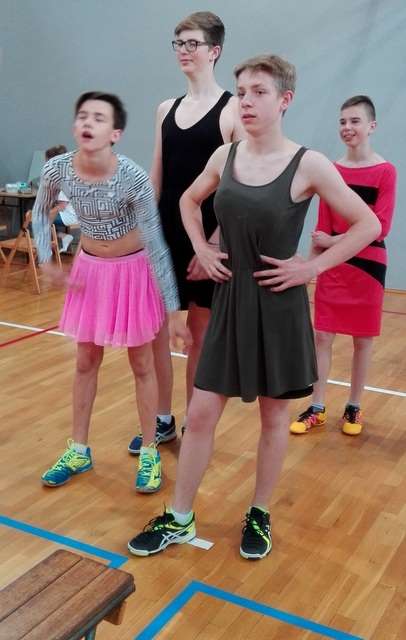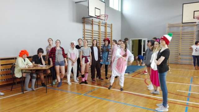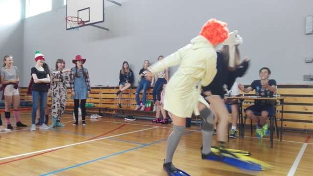 Na lekcjach wychowania fizycznego klas I i II Gimnazjum odbyły się zawody sportowe na wesoło. Na początku chłopcy mieli za zadanie zorganizować konkurencje dla dziewczyn, po czym nastąpił rewanż ze strony dziewcząt. W programie był między innymi: bieg w płetwach, rzut misiem na odległość, skok w dal z zasłoniętymi oczami oraz tor sprawnościowo – szybkościowy. Najwięcej śmiechu było podczas konkurencji biegu w płetwach, podczas której nie jednej z osób zdarzył się mały upadek. Największym problemem dla dziewczyn był rzut misiem, ponieważ wszystkie były świadome, że w tym momencie kończy się ich beztroskie dzieciństwo. Emocji i śmiechu było co nie miara!