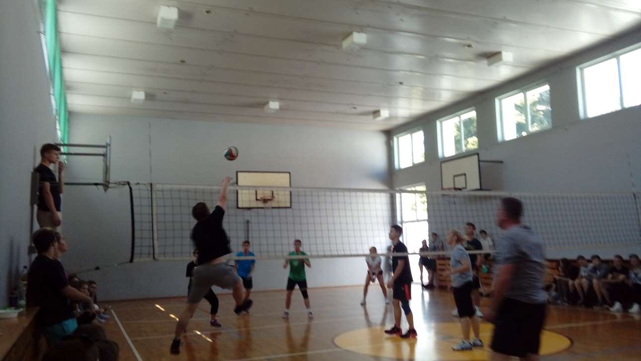 Dnia 1 czerwca odbył się mecz zwycięzców Szkolnej Ligi Piłki Siatkowej – klasy 1B z reprezentacją nauczycieli naszej szkoły. Atmosfera na sali gimnastycznej od samego początku była niezwykle przyjazna i widać było dużą współpracę w obydwu drużynach. Na pewno była to okazja do integracji zarówno w jednej, jak i w drugiej grupie. Drużyny do końca z wielką zaciętością walczyły o zwycięstwo, czego dowodem było rozegranie aż pięciu setów, a sam tie-break skończył się wynikiem 18:16. Jak wiadomo, zwycięzca może być tylko jeden! Po wielu walecznych akcjach i wylanych potach pierwsze miejsce wywalczyła wynikiem 3:2 drużyna reprezentacji uczniów. Gratulujemy wszystkim, którzy wzięli udział w walce, jednocześnie dziękując za trzymające w napięciu piękne, sportowe widowisko :)