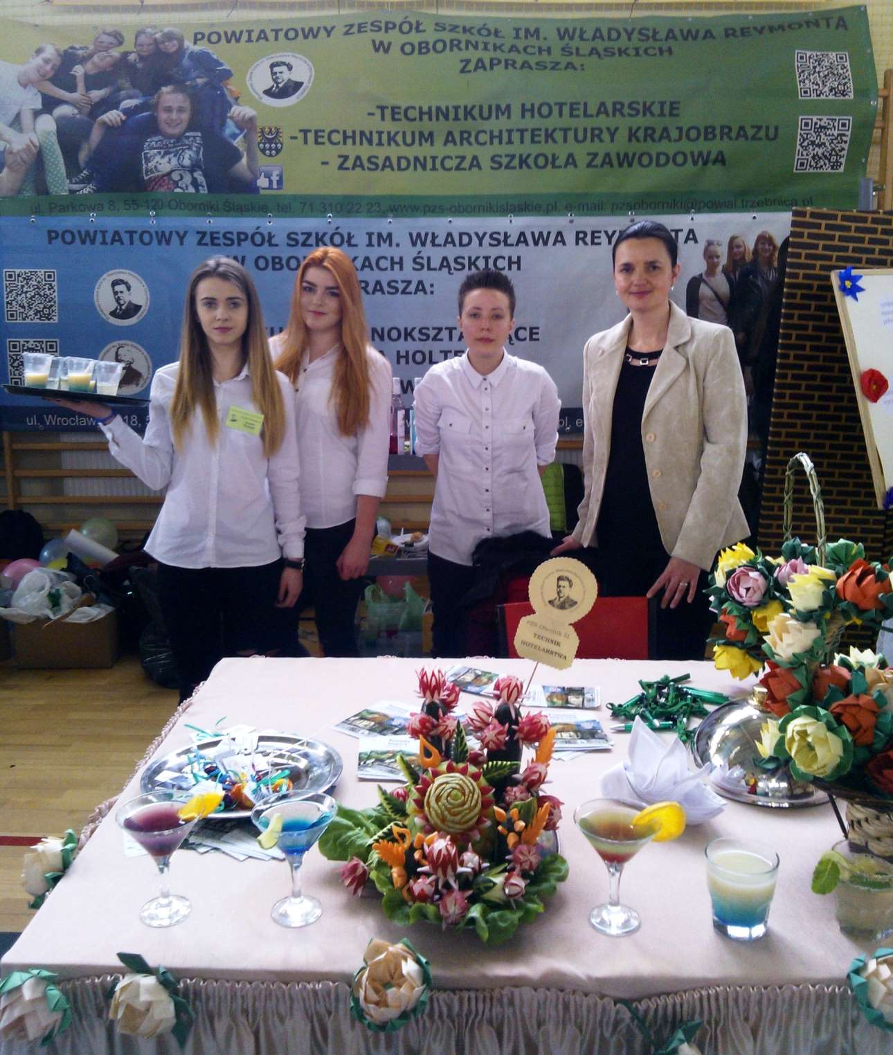 Uczniowie Technikum Hotelarskiego serwowali odwiedzającym stoisko profesjonalne drinki bezalkoholowe, opowiadali o wycieczkach zawodoznawczych, praktykach w wysokiej klasy hotelach oraz sukcesach naszych uczniów na tegorocznym Kulinarnym Rajdzie Młodych Mistrzów w Hotelu Haston**** Wrocław ( zdobycie 1 i 3 miejsca ).